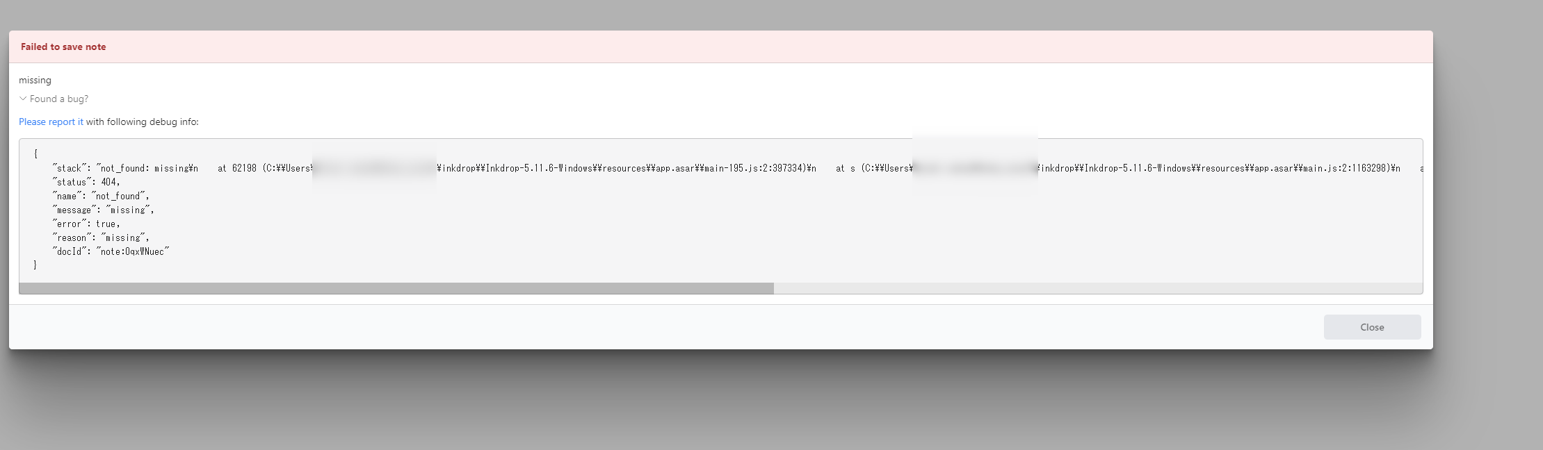 Today, I created a new note as usual, and an unfamiliar error occurred.