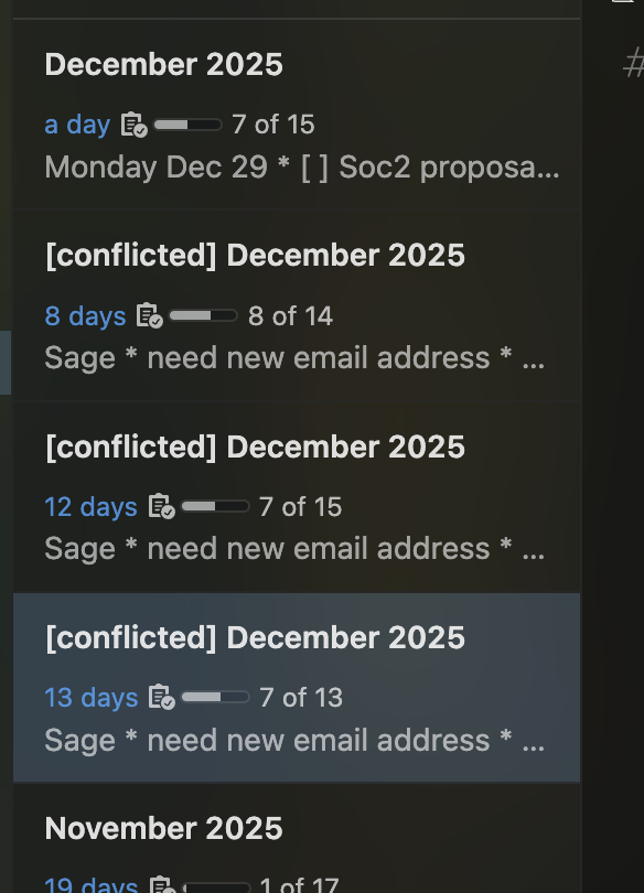 All the sudden, I am getting duplicated conflicted notes. I only open/edit notes on a single device. I have occasionally had this problem in the past, but now it is occurring more often.