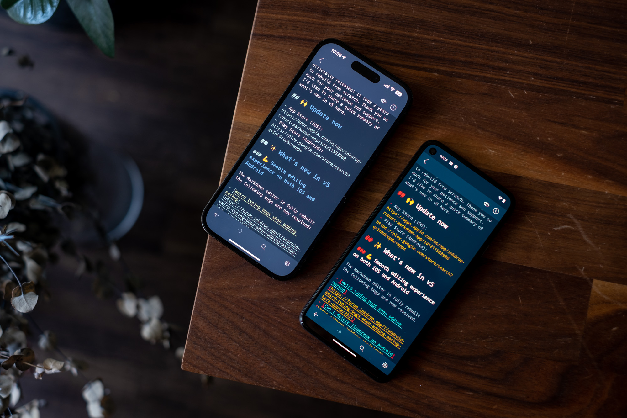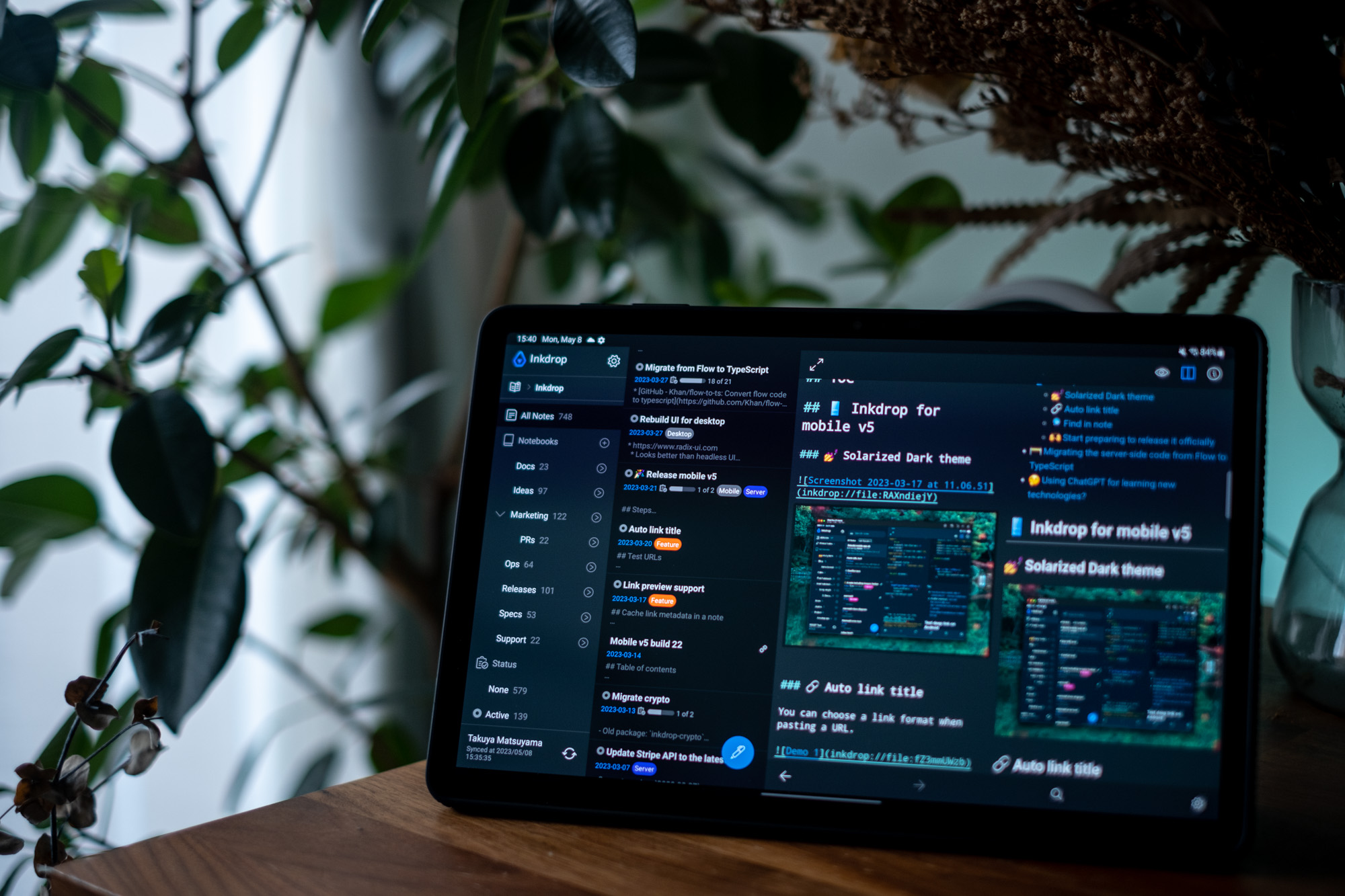 It’s Takuya, the solo developer of Inkdrop. I’m so excited to announce that Inkdrop for mobile v5 has been officially released! It took 2 years to rebuild from scratch. Thank you so much for your patience and support. I’d like to share a quick summary of what’s new in v5 here.
