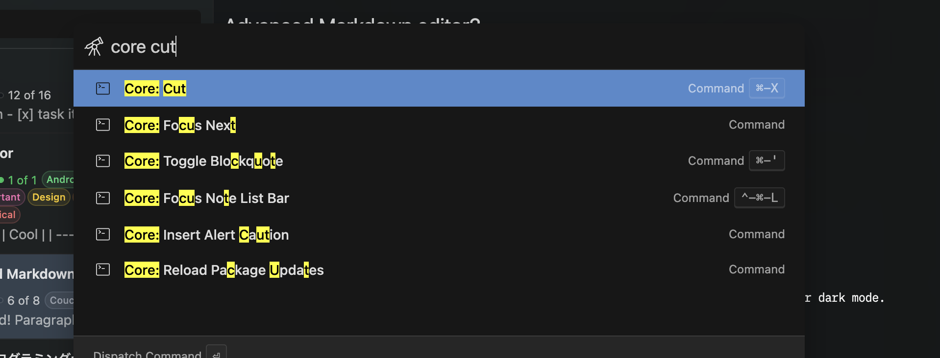 I played a bit with the FuzzyMatcher implementation, but it seems to work alright. I tested the inputs from my first post against all Inkdrop commands using the matcher in a simple script, and it seems to work as expected.