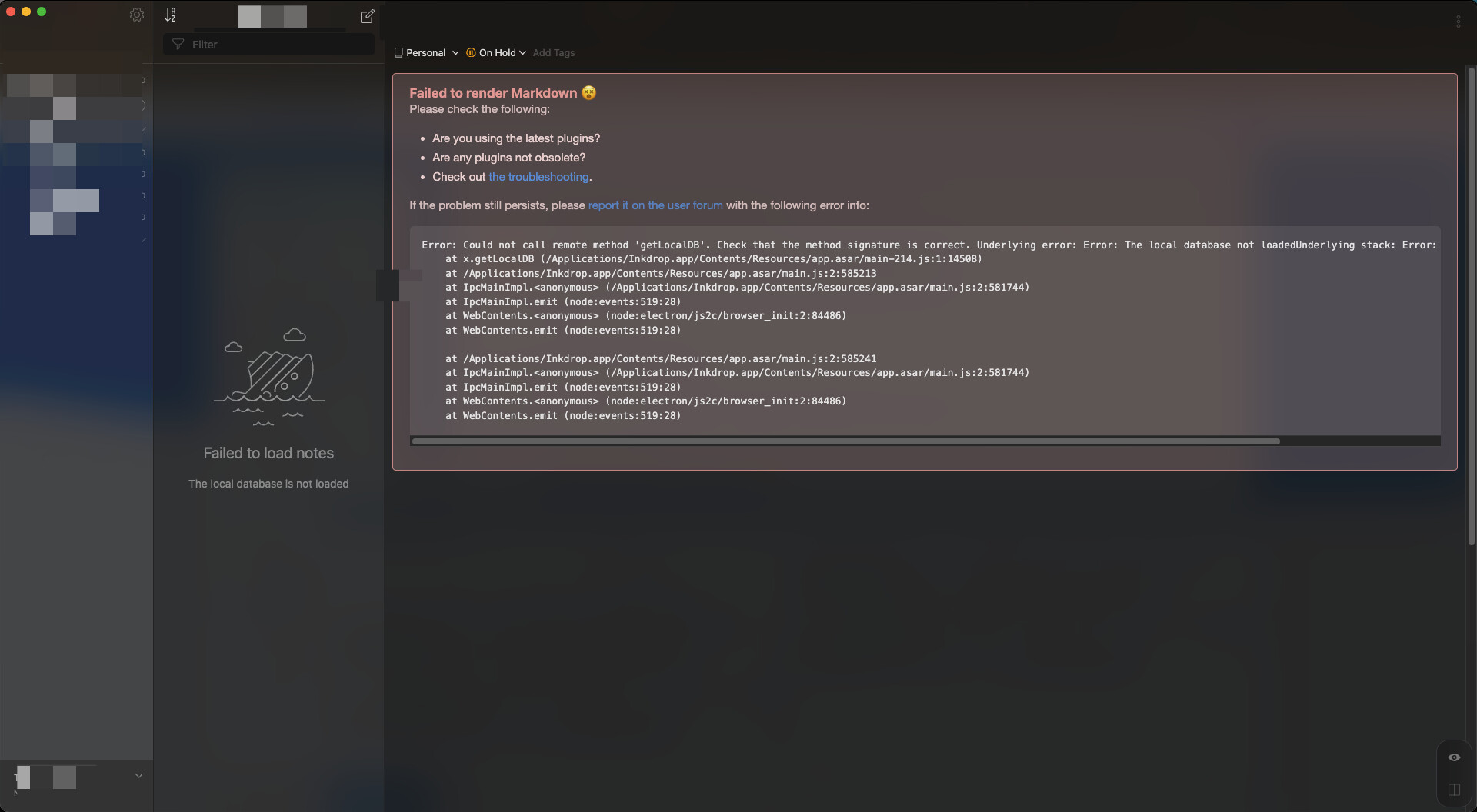 I just accessed Inkdrop and it reported a lost DB connection error.